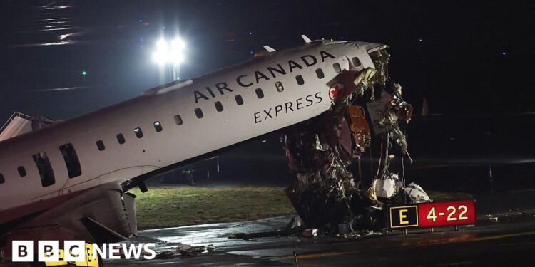 Eyewitnesses have described the moment Air Canada flight AC8646 crashed into a fire truck on the runway of New York’s LaGuardia airport.