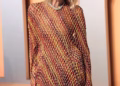 She completed the beach-ready look with a dark green cover-up, a black fedora hat, oversized sunglasses, and a beige clutch bag.