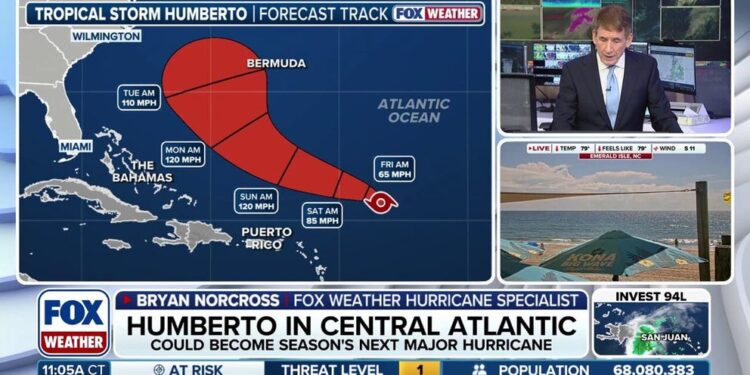 TROPICAL STORM HUMBERTO COULD RAPIDLY INTENSIFY INTO MAJOR CATEGORY 3 HURRICANE THIS WEEKEND