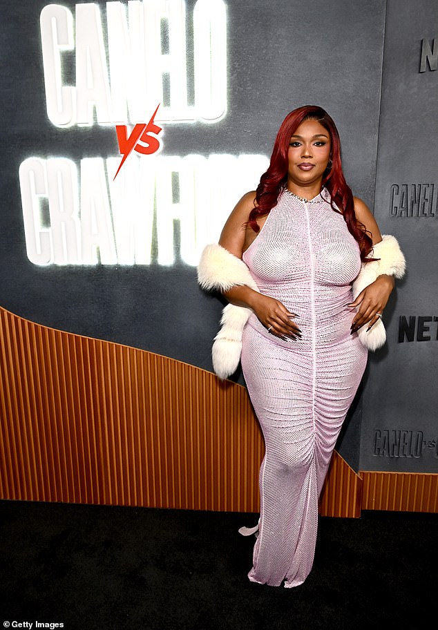 Lizzo continued to flaunt her incredible weight loss on Saturday night as she joined fellow A-list stars at the Canelo v Crawford fight event at Allegiant Stadium in Las Vegas.
