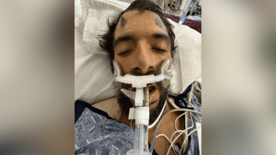 Due to privacy laws, the hospital is not releasing details about the man’s condition but images shared by officials showed the man hooked up to a breathing device.