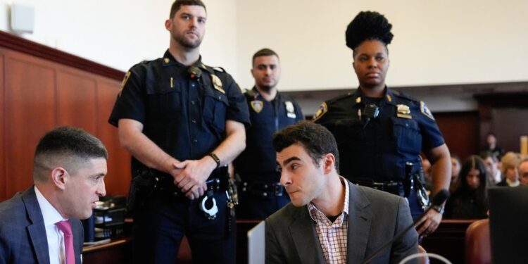 At Monday’s hearing, Mangione watched stoically as prosecutors played surveillance videos of Thompson’s killing and Mangione’s arrest five days later.