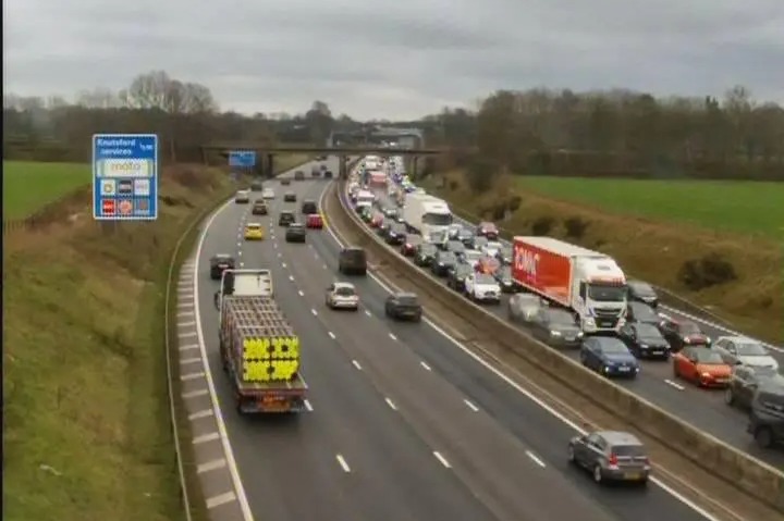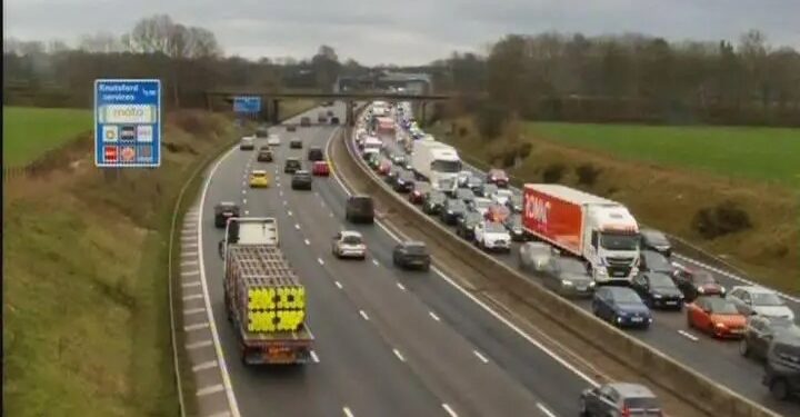 Travel service Inrix says: “Two lanes closed and queueing traffic due to accident on M6 Northbound after J19 A556 (Knutsford).