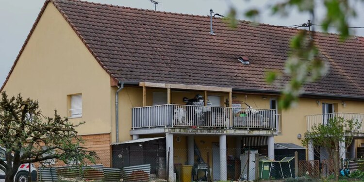 A building and parking area where a 9-year-old boy was rescued in Hagenbach, France