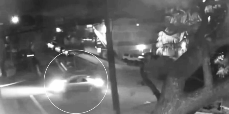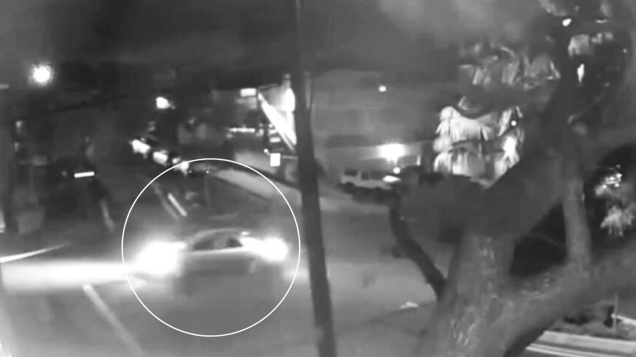 Grainy footage from the nearest surveillance camera was unable to capture clear details of the vehicle as it drove away.