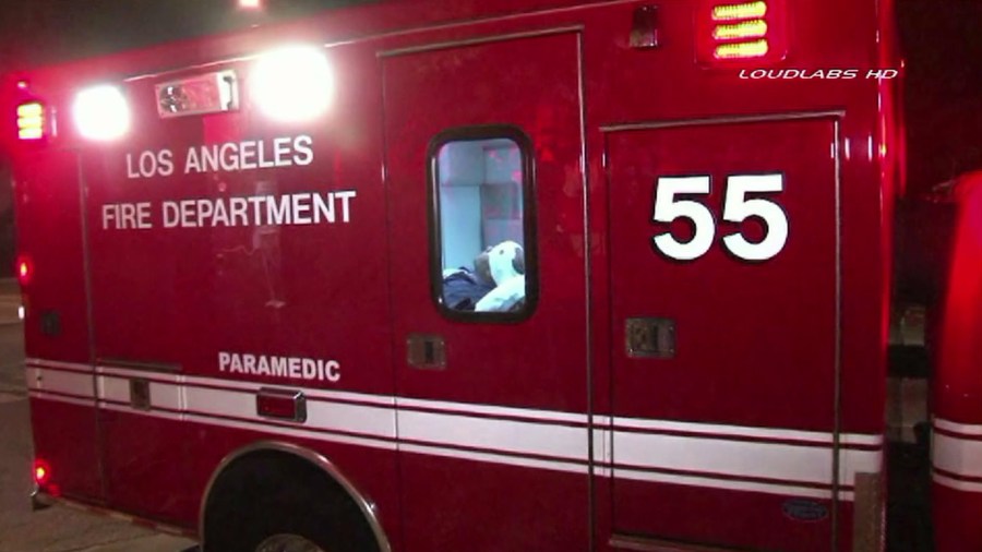 The incident at the intersection of Olympic Boulevard and Maple Avenue was reported to the L.A. Fire Department just before noon.