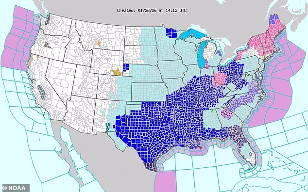Map reveals 23 US states under hypothermia warnings as historic deep freeze grips millions