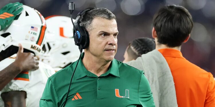 Head coach Mario Cristobal of the Miami Hurricanes looks on in the fourth quarter against the Ole Miss Rebels during the College Football Playoff Semifinal at the VRBO Fiesta Bowl at State Farm Stadium on Jan. 8, 2026 in Glendale, Arizona. (Christian Petersen/Getty Images)