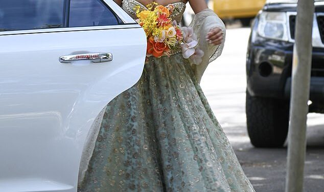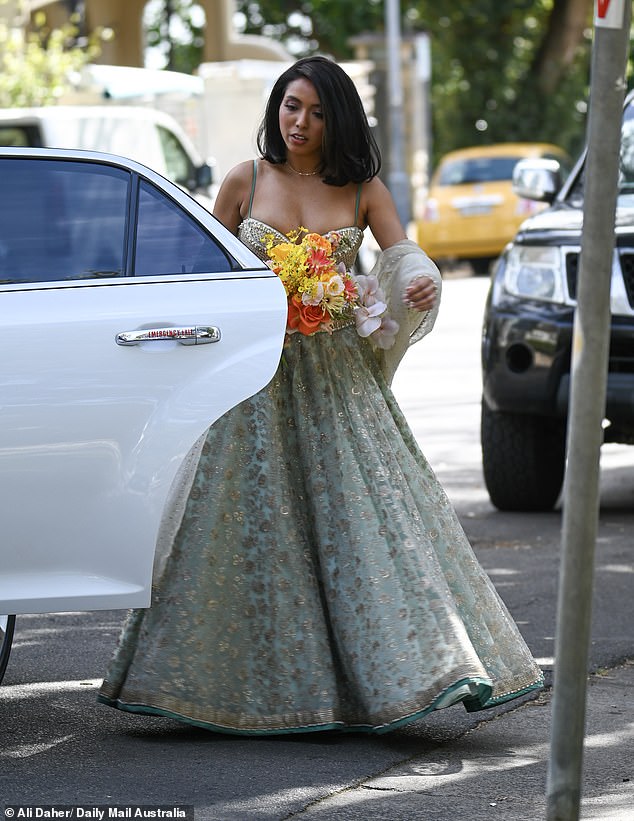 In August, the couple wed in a lavish multicultural wedding at Lindesay House in Darling Point, with Ankita stunning in an intricate sage green and gold lehenga, holding a bright bouquet of yellow and peach blooms.
