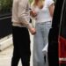 Bride-to-be Roxy Horner kisses Jack Whitehall as they say their final goodbye while her dress is carried out to a taxi ahead of their star-studded wedding this weekend