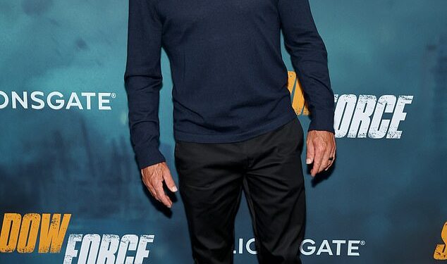 Sporting a scruffy beard, he attended the premiere in a casual yet polished outfit as he posed alongside his wife of two decades. The Martian star paired a navy blue, long-sleeved shirt with black, fitted trousers and faux leather sneakers