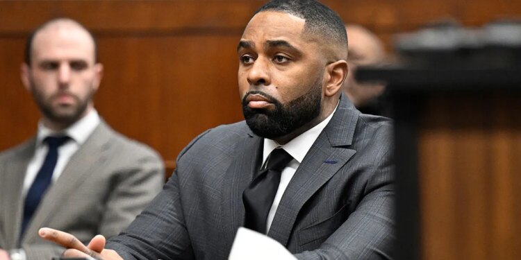 Former Michigan football coach Sherrone Moore appears in a courtroom in Ann Arbor, Mich., on Jan. 22, 2026. (Jose Juarez/AP)