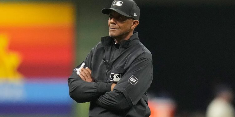 Umpire CB Bucknor #54 during the game between the Milwaukee Brewers vs Tampa Bay Rays at American Family Field on March 30, 2026, in Milwaukee, Wisconsin. (John Fisher/Getty Images)