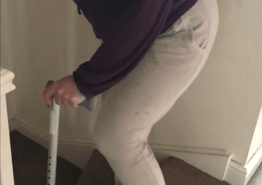 Burnell-Chambers filmed herself appearing to struggle to walk down a flight of stairs with the aid of a cane.
