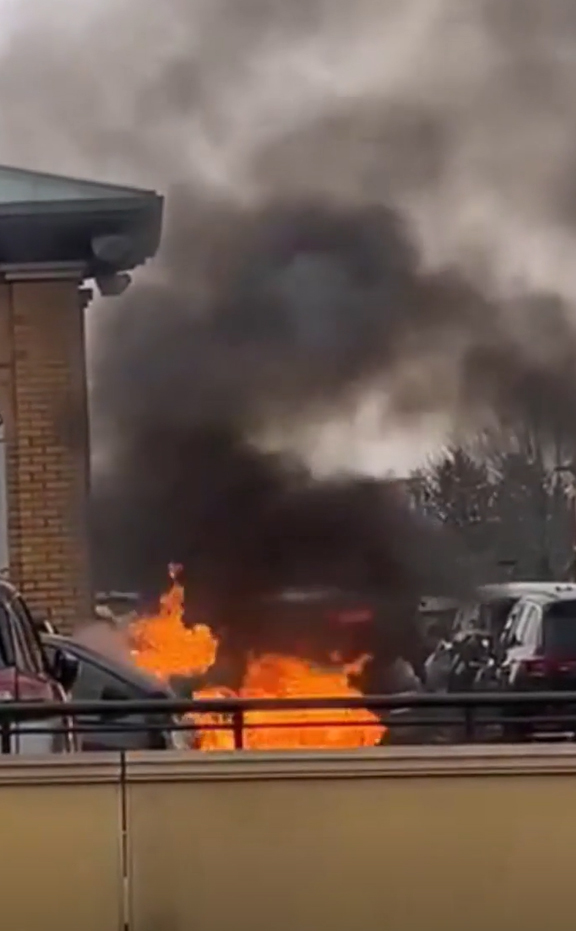Bright orange flames leapt into the air as stunned bystanders watched the chaos unfold.