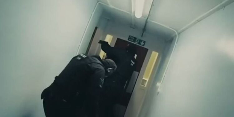 Now, shocking footage has captured the moment Bedfordshire Police barged into a flat in Luton after gunshots were heard.