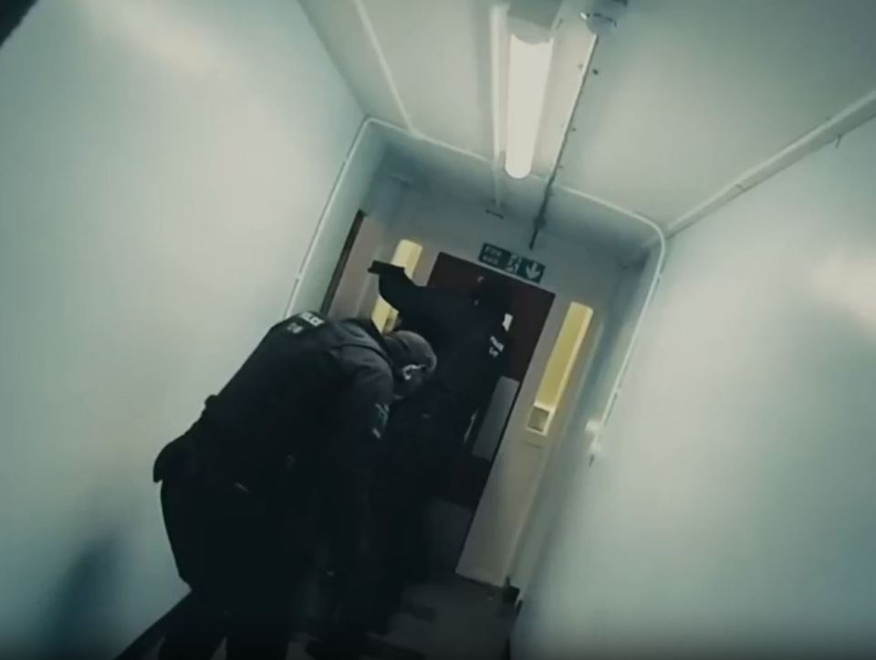 Armed cops were shown preparing to enter the flat to search for a shooter after a 999 call reported that gunshots had been heard.