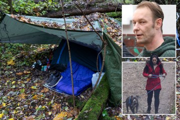 The paedo, 49, is being guarded by two creepy female “helpers” and a vicious pit bull terrier at his new home – a tent hidden away in the German wilderness.