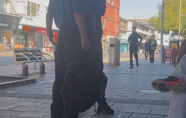 The astonishing footage was captured on Above Bar Street in Southampton on Tuesday, September 25 in broad daylight.