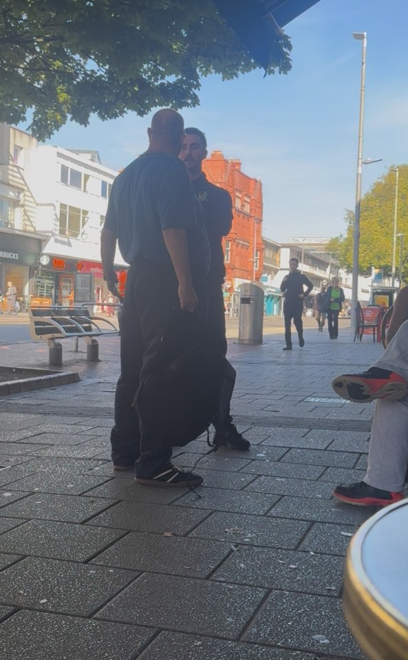 It shows the man, dressed in a t-shirt with shades on, confronted by a member of staff in the street, accusing him of shoplifting from the store.