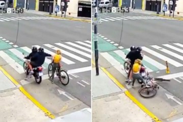 Incredible moment tourist fights off bike muggers who tried to snatch her phone