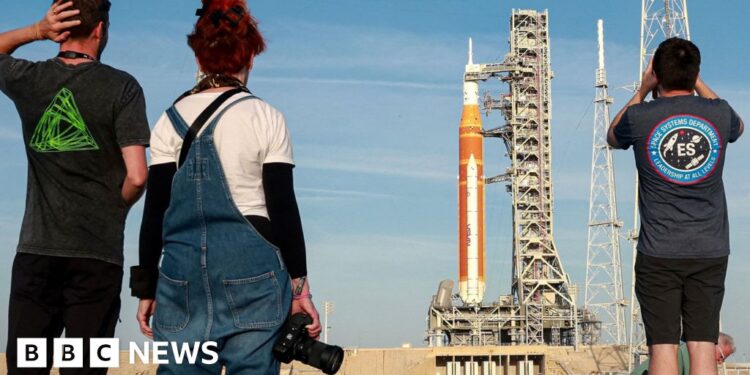 In her small shop on Merritt Island, racks of orange, blue and black T-shirts depict hand drawn rockets, mission patches and moonscapes, ready for the crowds who arrive on regular launch days. But this launch is different, she tells us. “We’ve wanted to go back to the Moon since the ’70s. People are excited. People are beyond excited,” she said.