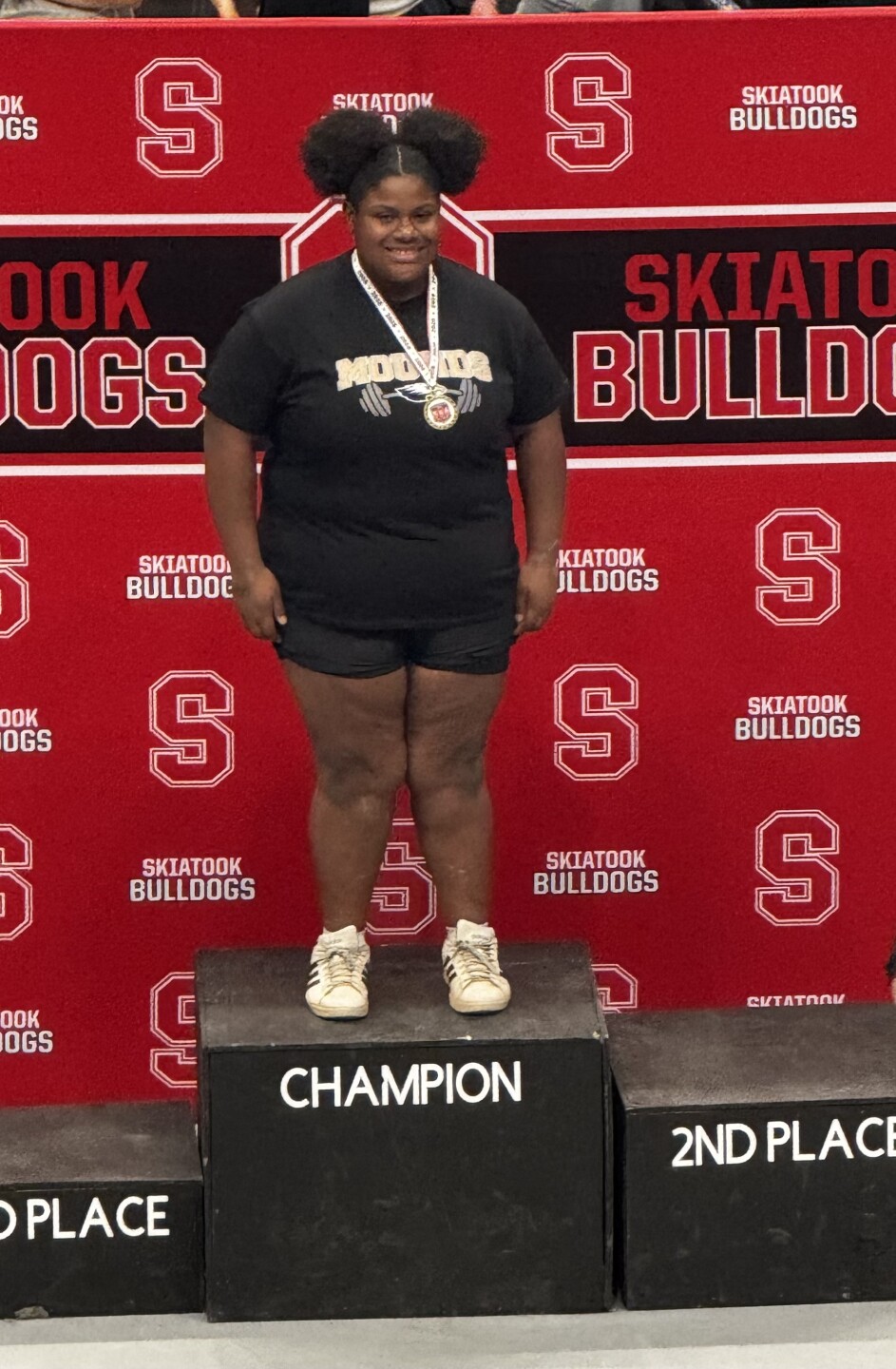 “Awesome moment. Loud, intense,” Mounds athletic director and powerlifting coach Jonathan Stowe said. “All of her teammates were there surrounding her, all the girls that were there with her.”