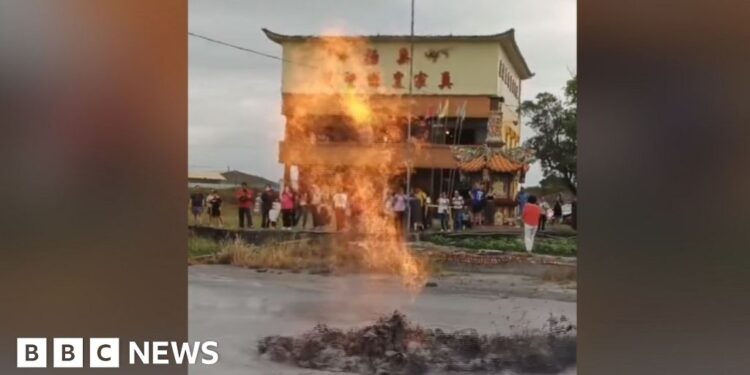 The Wandan mud volcano is a particularly unusual example of the geological phenomenon, an expert has told the BBC.