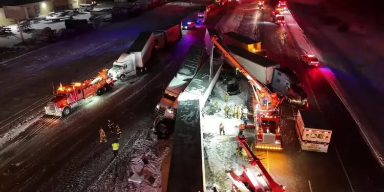 Massive vehicle pileup occurred in Indiana due to extreme weather affecting the area.
