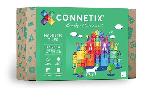 CONNETIX magnetic tiles lets the imagination run wild, coming with 102 pieces. They easily attach, are sturdy, light-weight and beautifully colored