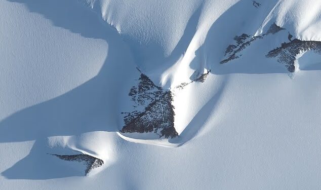 It is unclear what the structure could be, but it looks similar to a nunatak – a natural mountain peak that juts up above glaciers.