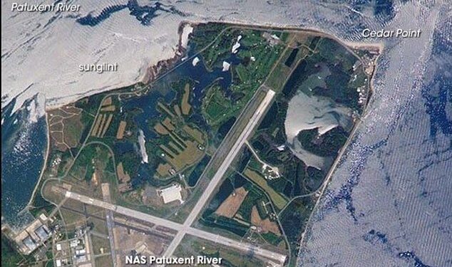 Naval Air Station Patuxent River in Maryland (Pictured from space) has allegedly been used to store and study ‘non-human’ technology, including a craft of ‘unknown origin’