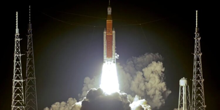 NASA’s new moon rocket lifts off from Launch Pad 39B at the Kennedy Space Center in Cape Canaveral, Fla., Wednesday, Nov. 16, 2022. This launch is the first flight test of the Artemis program. (John Raoux/AP Photo)
