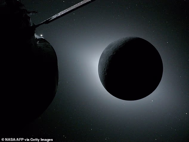 A third photo, meanwhile, shows the rings of the Orientale basin. ‘At the 10 o’clock position of the Orientale basin, the two smaller craters – which the Artemis II crew has suggested be named Integrity & Carroll – are visible,’ NASA explained