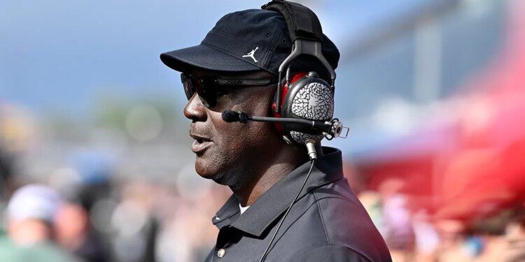 Michael Jordan, NBA Hall of Famer and co-owner of 23XI Racing looks on during the NASCAR Cup Series FireKeepers Casino 400 at Michigan International Speedway on Aug. 18, 2024 in Brooklyn, Michigan. (Logan Riely/Getty Images)