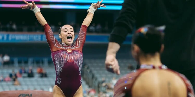 University of Oklahoma gymnastics star Faith Torrez came up with a clutch championship-winning routine for her team in the NCAA championships Saturday, extending the program’s dynasty.