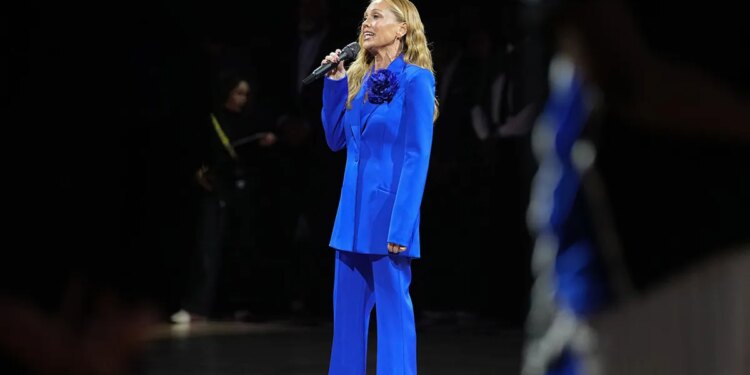 Vanessa Williams sings before the game between the Memphis Grizzlies and the Orlando Magic on Sunday, Jan. 18, 2026, in London. (AP Photo/Kin Cheung)