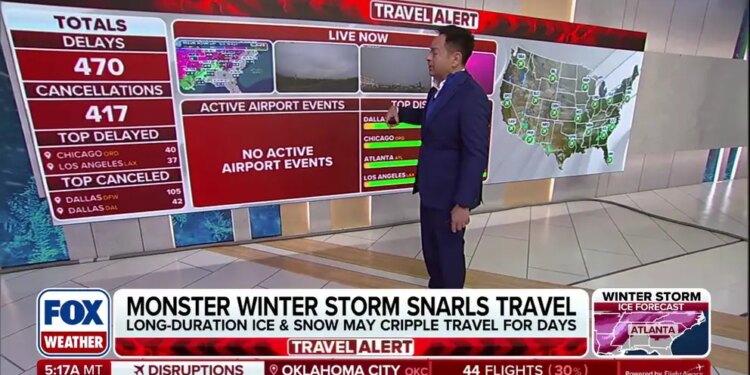 Ahead of a potentially historic winter storm, over 2,000 flights have already been canceled through Sunday. The number is expected to grow as the sprawling system — spanning 2,300 miles — is threatening widespread snow and ice that could disrupt travel for days from the Southern Plains to the Northeast.