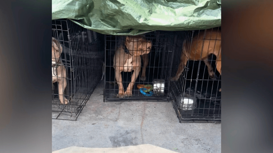 “We’ve seen pit bulls covered under tarps in the sun, dogs without access to food, water,” Parker told KTLA’s Kacey Montoya.