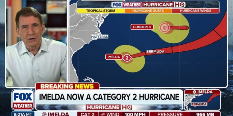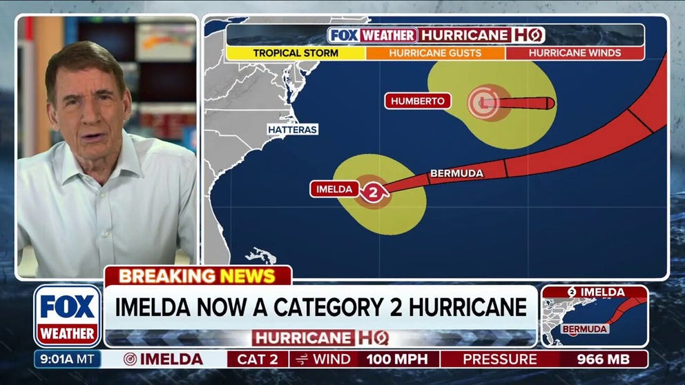 FOX Weather Hurricane Specialist Bryan Norcross provides exclusive analysis of Hurricane Imelda as it approaches Bermuda. Former Hurricane Humberto has merged with a dip in the jet stream over the North Atlantic. That same dip could strengthen Imelda as it impacts Bermuda later Wednesday evening. Both systems will create swells that are generating life-threatening rip currents for the U.S. East Coast.