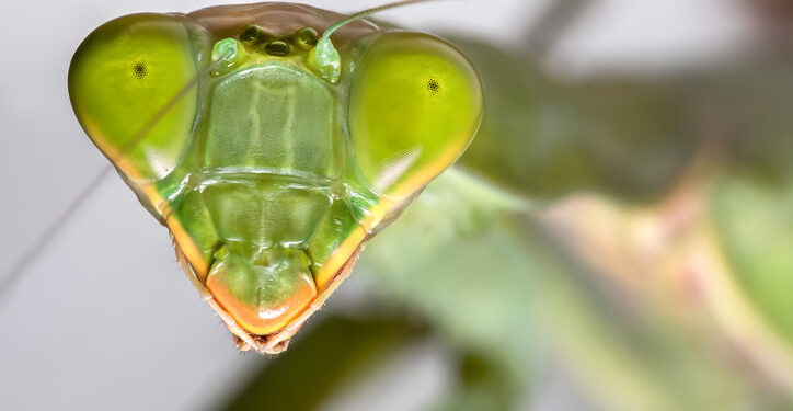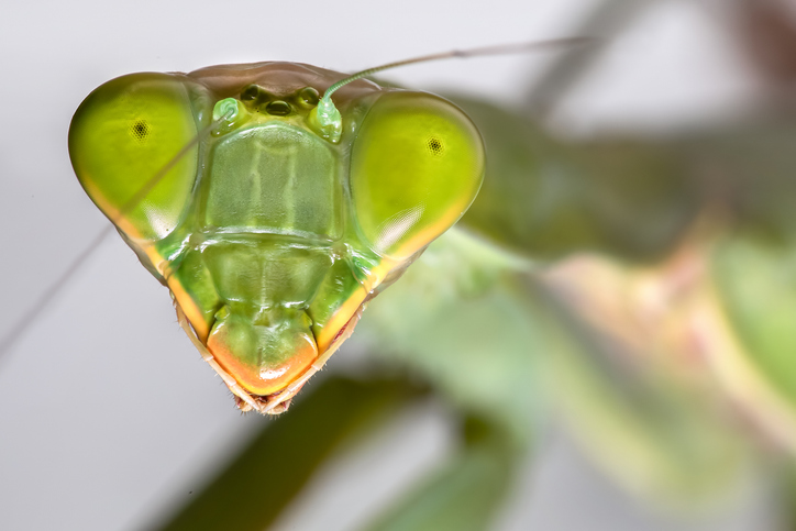 The European variety of praying mantis measures to about three inches long and eats crickets and flies.