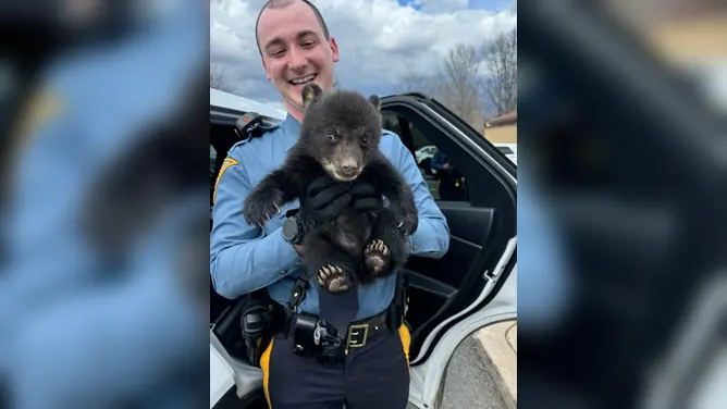 New Jersey State Police Officers saved a baby bear spotted on the highway
