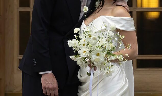 Meanwhile celebrity florist Hamish Powell (pictured) took to TikTok as he created the bride’s ‘chic’ and ‘British grown’ bouquet