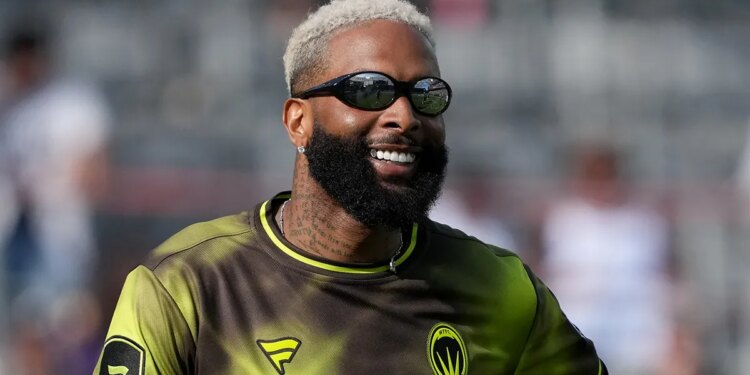 Wildcats FFC receiver Odell Beckham Jr. during the Fanatics Flag Football Classic at BMO Stadium in Los Angeles, California, on March 21, 2026. (Kirby Lee/Imagn Images)