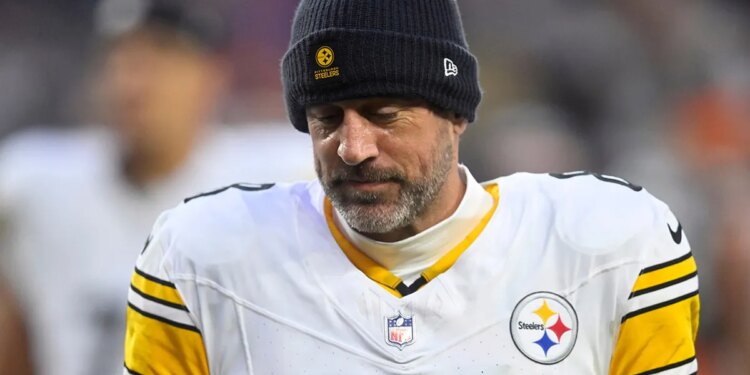 Pittsburgh Steelers quarterback Aaron Rodgers walks off the field after an NFL football game against the Cleveland Browns, Sunday, Dec. 28, 2025, in Cleveland. (David Richard/AP Photo)