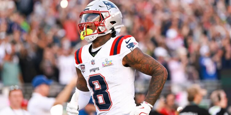 Stefon Diggs of the New England Patriots runs on the field prior to Super Bowl LX against the Seattle Seahawks at Levi’s Stadium on Feb. 8, 2026, in Santa Clara, California. (Kathryn Riley/Getty Images)