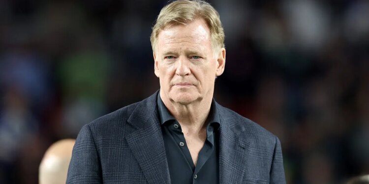 NFL Commissioner Roger Goodell after the Super Bowl between the Seattle Seahawks and New England Patriots at Levi’s Stadium in Santa Clara, Calif., Feb. 8, 2026. (Simon Bruty/Sports Illustrated via Getty Images)