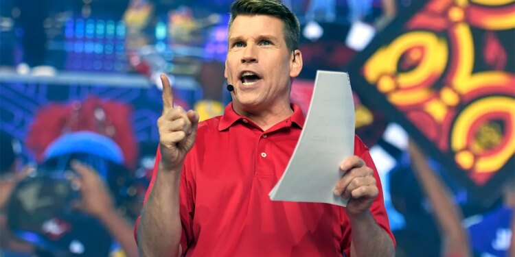 Scott Hanson speaking on stage at the 2025 NFL Draft in Green Bay Wisconsin