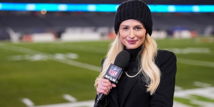 NFL Network sideline reporter Jane Slater stands on the sidelines prior to an NFL football game between the Seattle Seahawks and the Chicago Bears, at Soldier Field on Dec. 26, 2024 in Chicago, Illinois. (Todd Rosenberg/Getty Images)