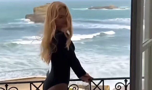 She stood on her tip-toes before pulling a few sexy poses and dancing a bit before flipping her hair and smiling